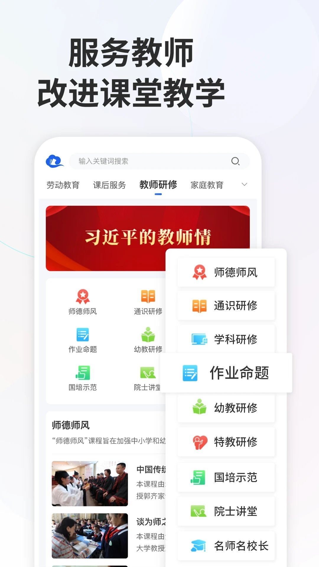 思政师德、通识研修、学科研修、作业命题、幼教研修、特教研修