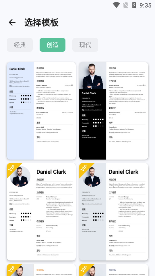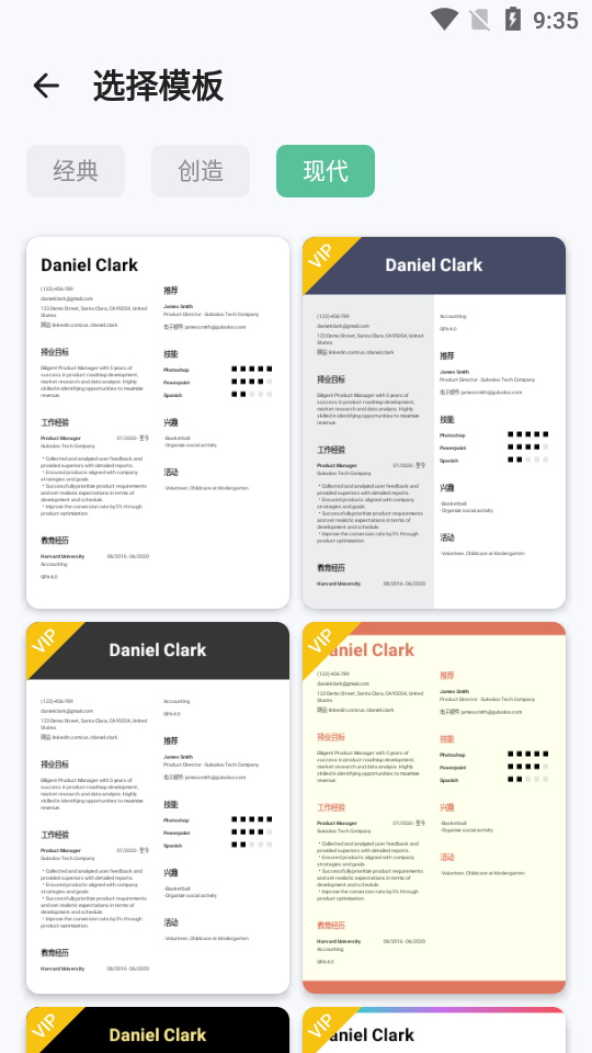 *软件提供多种专业设计的简历模板,用户可以根据自己的需求选择合适的模板,使简历看起来更为专业和吸引人。