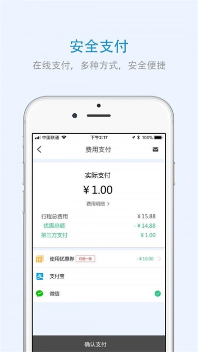 4.优惠券的使用:软件提供优惠券的使用功能,用户可以通过领取优惠券享受打车费用的减免或折扣等,节省用户的出行开支。