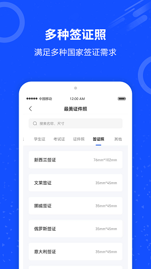 1.丰富多样的证件照拍照模板,包括身份证、护照、学生证等多种尺寸可选。