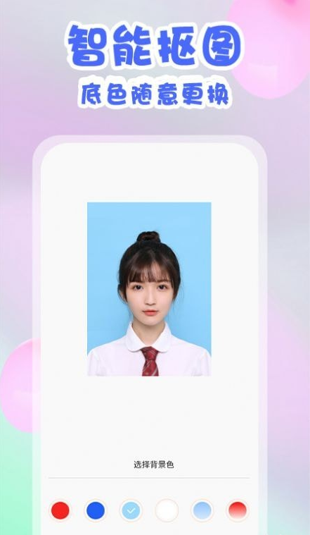 2.选择不同规格尺寸、底色、服装、发型等多种个性化编辑和修图功能,让照片更加个性化。