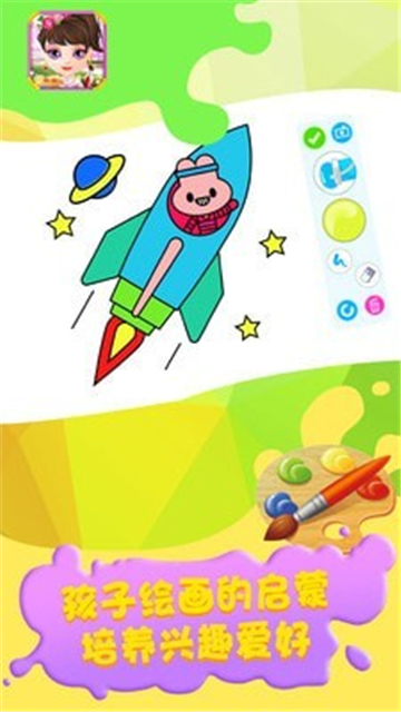 2.炫彩图章功能,宝宝们可以选择不同的图章,涂抹在画板上,为他们的作品加上个人特色,展示他们的独特创意。