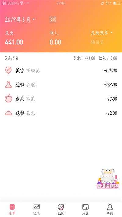 3、通讯功能:与他人分享账单和消费情况,促进交流和讨论,使记账过程更加有趣和轻松。