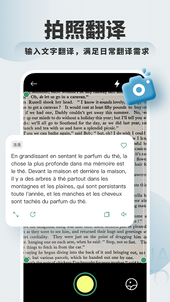 3.支持拍照翻译功能,用户只需拍摄待翻译的文字,即可快速获取翻译结果,方便实用。