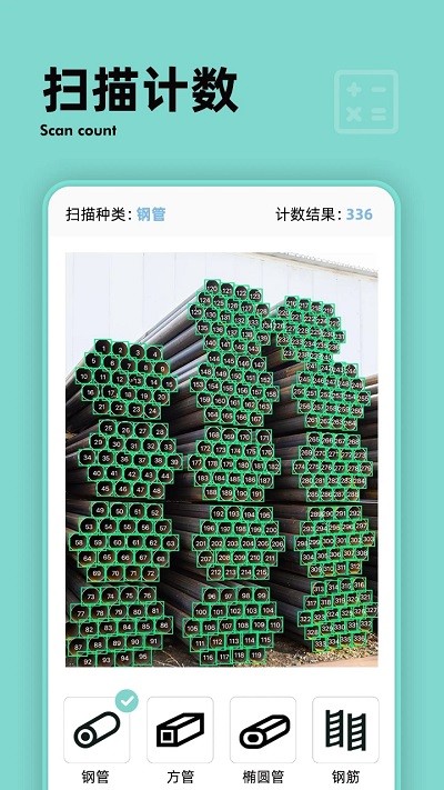 实时节省时间的工具,如原木、金属管和铜管,可以扫描和计数