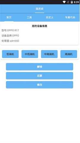 1、下载并打开软件,进入软件即可看到有地段终端高端的可供用户选择,根据自己的手机来选择