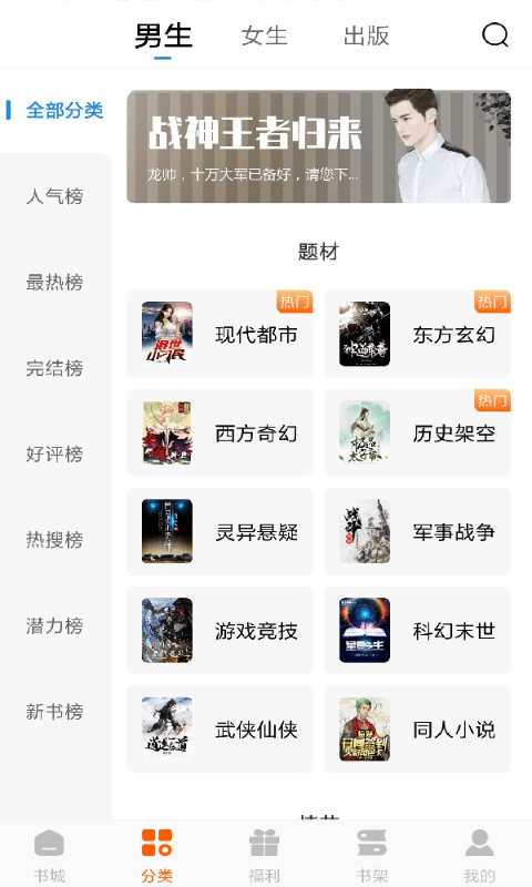 3、【男女频道】特色男、女频道,专属男生、女生的不同阅读空间。