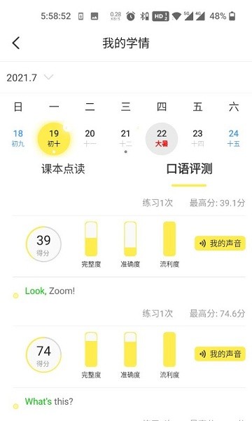 3、语音评测功能,及时纠正孩子们的发音错误,帮助他们更快地改正。