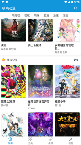 1、可以在主页和时刻表中访问应季热番,还可以在归类或检索去搜索有兴趣的日漫。
