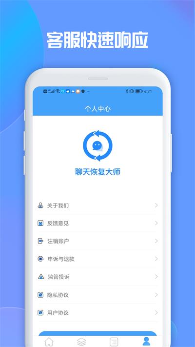 聊天恢复大师app是一款十分好用的手机聊天恢复工具,聊天恢复大师app上能够将自己删除的聊天记录进行恢复,软件的操作方式十分的简单,用户能够很轻松的使用这款软件,聊天恢复大师app能够让用户的手机运行的更加的流畅。