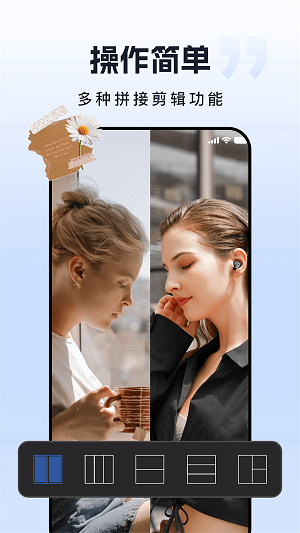 2.设置多种拼接,一键操作,编辑工具,色彩处理,趣味贴纸等各种丰富的功能。