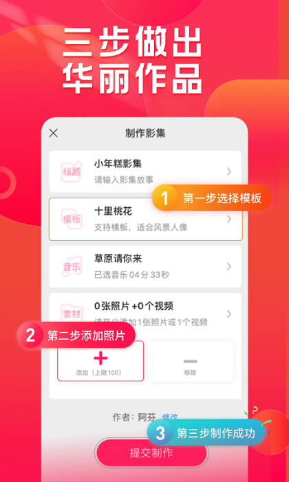 小年糕制作相册这是一款专业的相册编辑软件,可以通过里面的编辑模式,快速的成为一个编辑达人,能够使你的照片变得更加有意义和生动,能够更好的保留自己的美好青春,你也可以将这些记录的内容分享给更多的朋友,让他们一起来使用里面的各种模板。