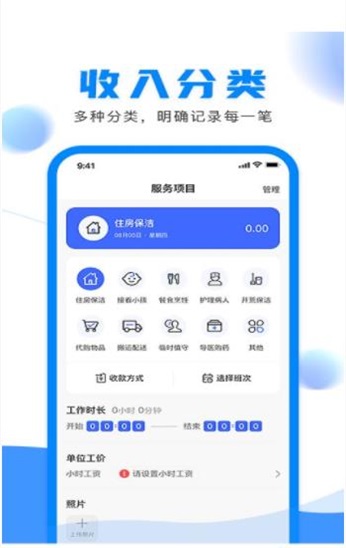 1.当用户在做钟点工时,可以将自己每天的收入情况记录在这款软件上面,能够得到更好的保存。
