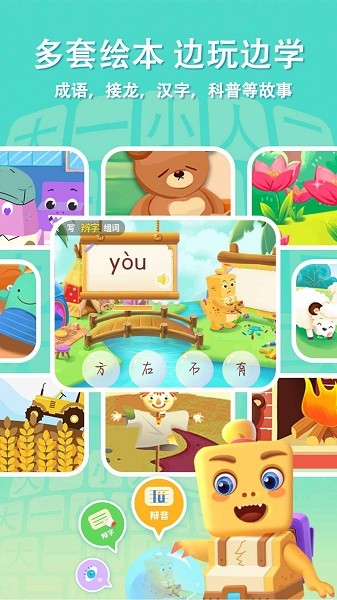 *五大环节有效识记,将汉字学习分为五个环节,包括拼音教学、拼字游戏、词组组词、语文与认字等,帮助孩子全面记忆和掌握汉字。