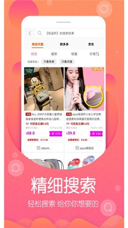 3、多家购物平台资源整合,用户可以在一个APP上便捷地查询多个购物平台的优惠信息。