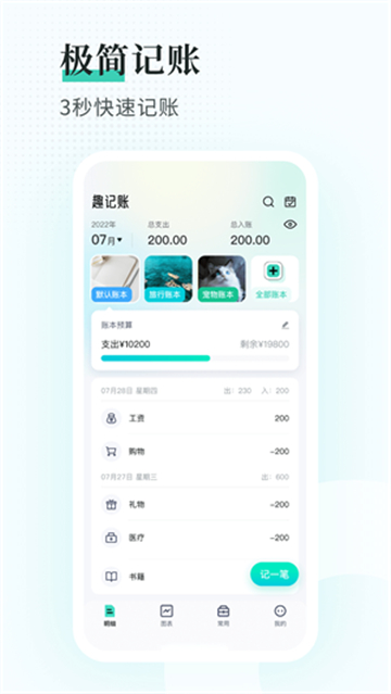 3.趣记账app上所有的记录工具都是免费的,大家能随意的记录各种各样的内容。