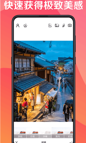 软件是一款功能丰富的相机软件,拍摄美丽的照片,并进行各种编辑和加工,满足用户不同的创作需求。