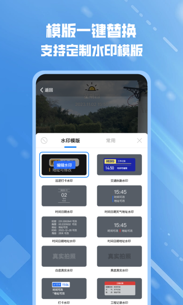 *提供多种水印模板和自定义编辑功能,满足用户水印打卡的各种需求。