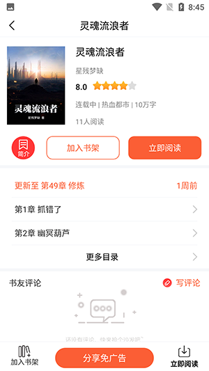 3、聚笔阁极速版app上所有的小说资源都是免费的,大家能随意的阅读自己喜欢的小说。