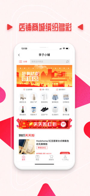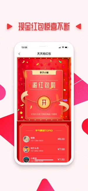 3.为用户提供现金红包领取功能,购物即可以赚钱,用最简单的方式给予用户更多实际的回报。