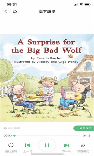 这款软件为人们绘本阅读提供了非常好用的平台,为大家专门设计的都是一些启蒙的知识内容,所以每位孩子都能更加轻松的掌握学习的方法以及技巧,从而更加对英语知识感兴趣,会在无聊的时候选择阅读里面的内容,还会为大家着重讲解一些知识点。