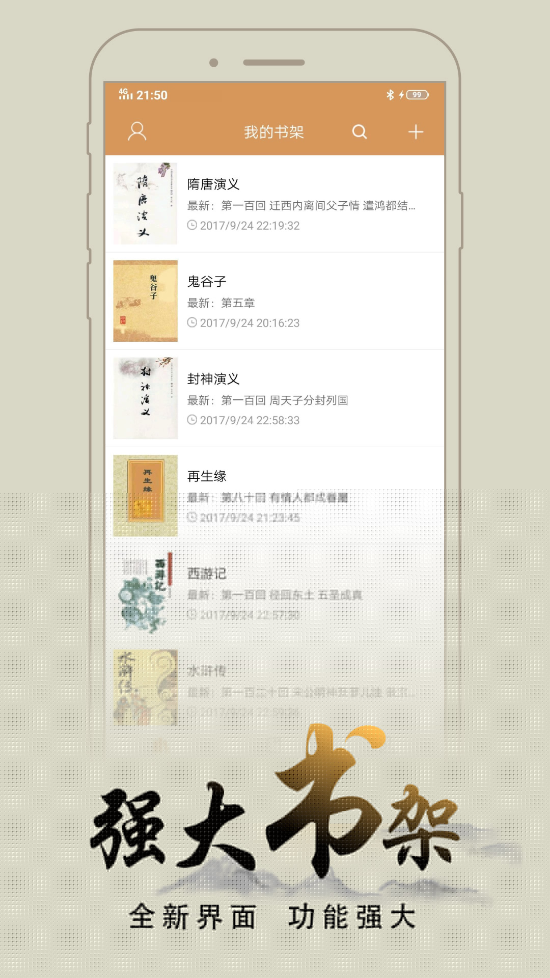 2、免费且新鲜无广告,可随时随地缓存书籍并收听!经典样式,专业章节可自由阅读。