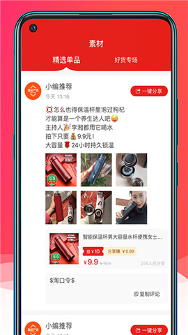 每天都会推荐一些优质好货,让用户可以在面疯狂的购买,也节省了宝贵的时间,也节省了很多的费用,还有很多的共享资源也可以分享给更多的朋友一起来购买,购买的时候也可以参考里面的真实评价或者销量单去进行购买,对自己喜欢的产品还可以加入到购物车,一次性下单,更加的省时省力。