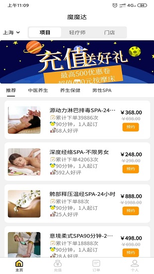 1、魔魔达app可以在线进行项目预约,还可以选择不同的推拿服务,可以任意的选择