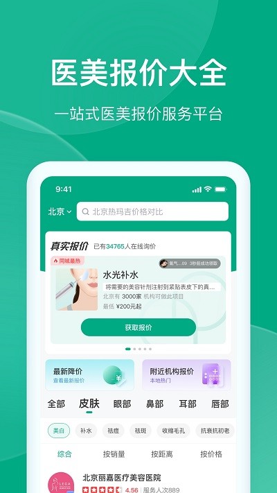 1、医美报价大全app是一款为用户们提供医美服务的软件,方便用户们随时都能查询附近的医美服务