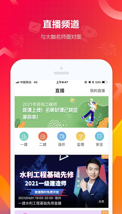 这款软件交代给用户永不收费的线上教育和学习,为广大的工程学习人员提供一个更实用的线上学习平台强大的功能,支持用户通过远程课程观看,便捷的进行线上辅导,还能够在这款软件里进行丰富的教材书籍购买。