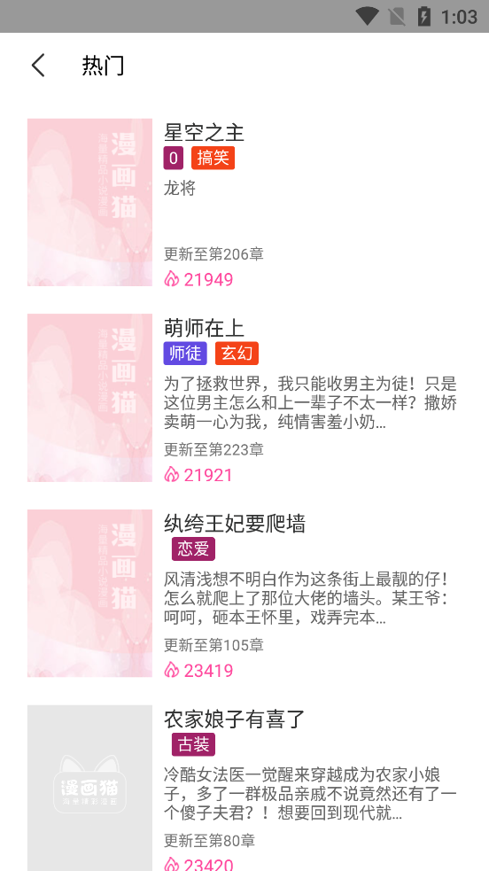 3、漫画猫免更新app上所有的漫画资源都是免费的,大家能随意的观看各种各样的漫画。