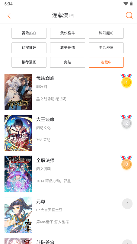 1、丰富的漫画种类,用户可以选择性的关注喜欢的栏目;