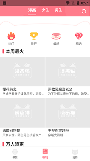 3、漫画猫无广告app能根据大家的观看历史来推荐合适的漫画,满足大家的观看需求。