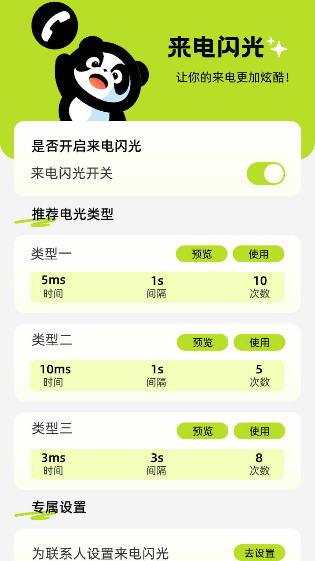 1、熊猫来电app还有个性潮流的来电铃声,给你不一样的来电体验。