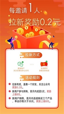 1、软件上会搞各种购物的优惠活动,朋友们随时来参与体验。