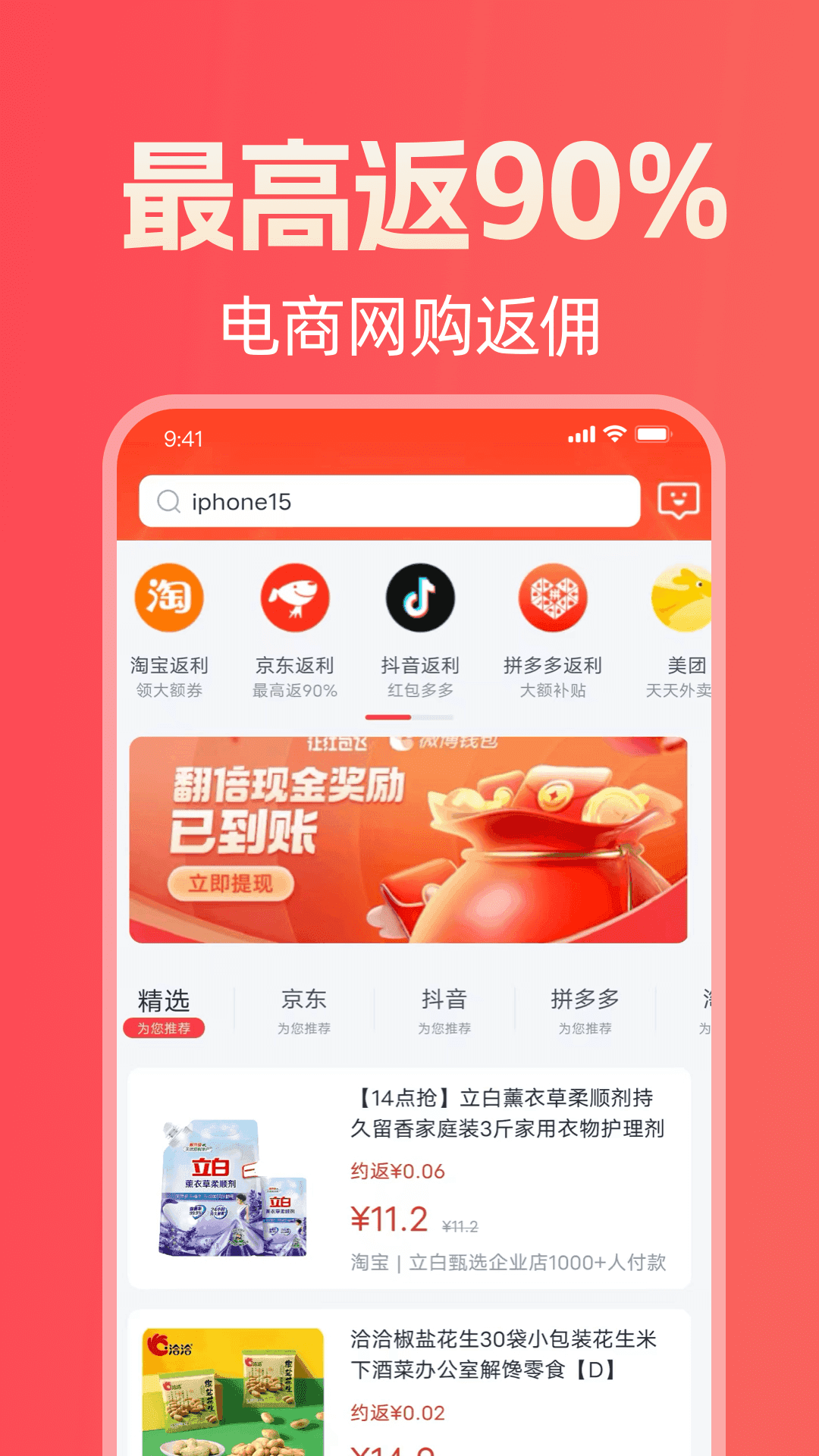 1、这里有非常多的商品分类,可以拿出手机进行选择,通过不同的专区,可以看到不同的各种优质商品。