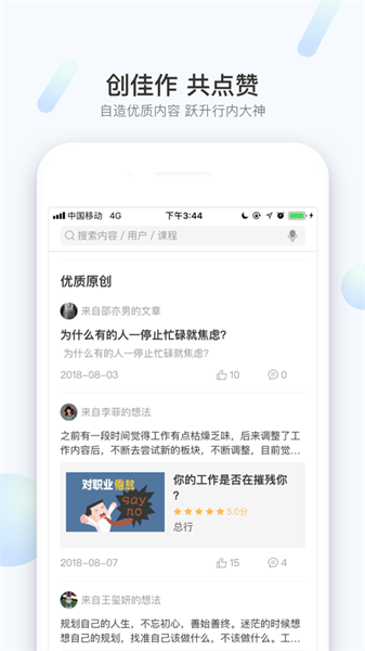1、提供多种分享工具,用户可以发布图文分享、制作微课程等,方便与他人分享学习心得和经验。