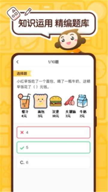 小猿口算数学是一款功能全面、内容丰富的小学生学习辅助软件,通过精选题目锻炼孩子的计算能力,并提供方便的错题本。它以全新的学习方式帮助小学生成为学霸,每天20分钟完成任务,提高计算能力和学习成绩。内容和课本同步,培养线上学习习惯。通过合理设置评审内容简单、精心设计提高基础和思维能力,任务与学习进度一致。