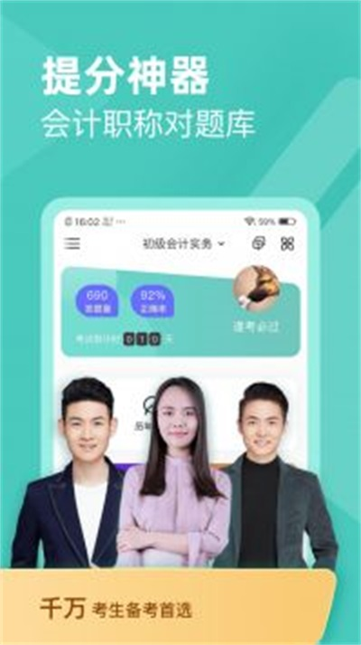 1、多功能教学软件:真题练习、考点讲解、在线问答等多种功能,全方位提高会计职称考试水平。
