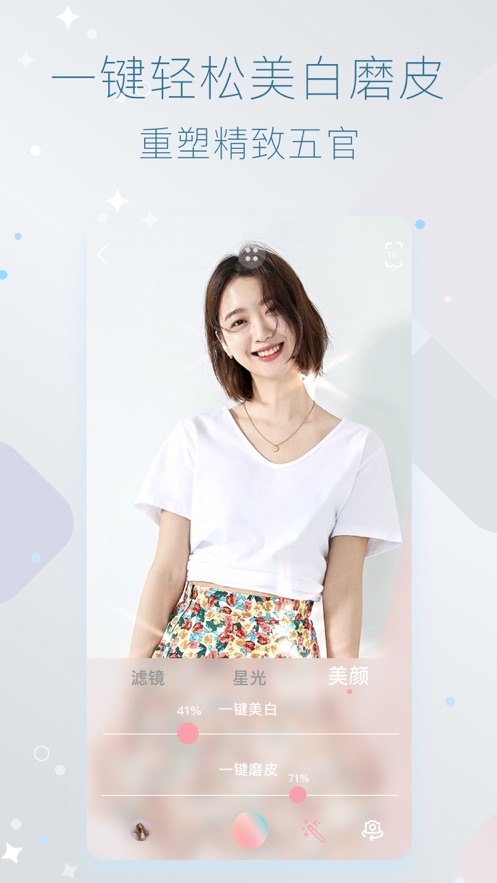 4、内置闪光魔法滤镜和美白功能,让初学者也能轻松拍摄出不同风格的照片。