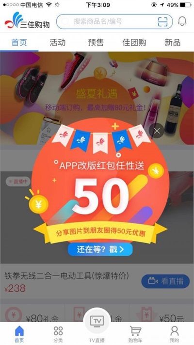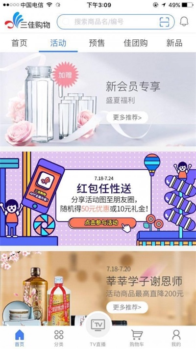 3.三佳购物app上没有任何的广告,让大家有着更加纯净的购物体验。