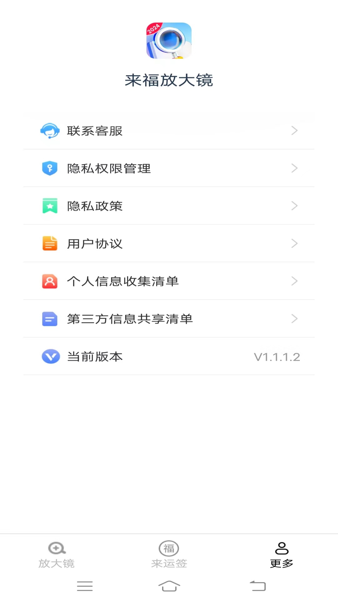 来福放大镜是一款操作简单、功能丰富的放大镜软件,用户可以轻松放大各种物体,并享受更多便捷服务。软件提供了多种放大镜模式可供选择,用户可以调节放大的倍速,并自动进行滑动缩放,满足不同场景下的观察需求。还可以帮助用户阅读小字体的文章,让用户看得更加清晰。此外,软件还提供了幸运签功能,让用户在使用的同时获得更多好运与祝福。