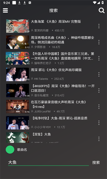 3、歌曲的搜索方式多多,超灵活有趣的线上播放平台。