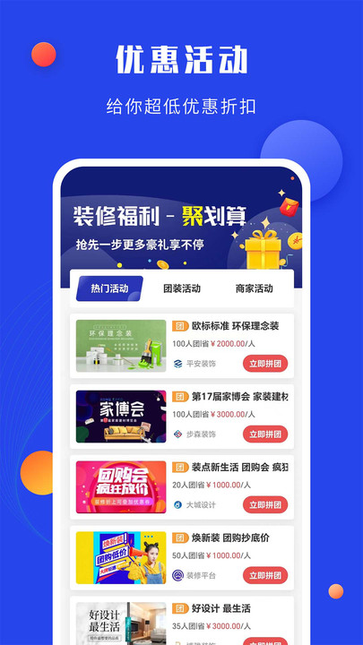 3、优惠活动,装修福利超划算,更多优惠折扣等你来领取。