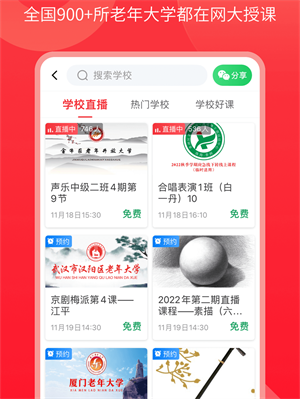 2、在线学习平台覆盖全国各个地区,老年用户不需要出门,就能随时随地在线学习感兴趣的知识。