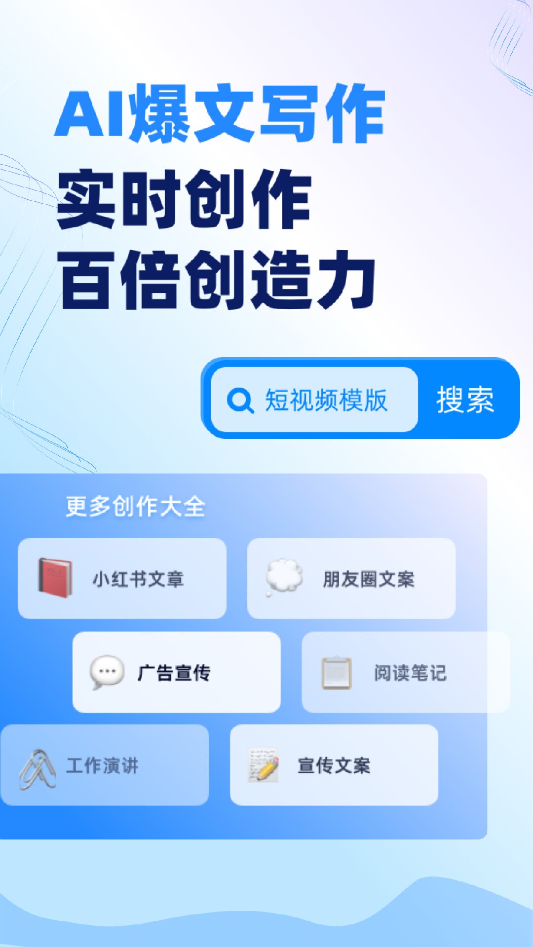 1、涵盖了多种不同类型的写作文案,大家可以轻松在线进行使用。