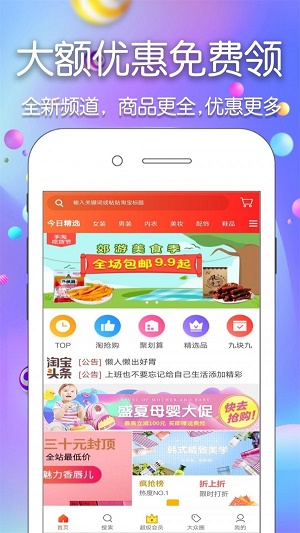 1、每天更新上百万大额优惠券免费领取,优享9商品包邮。