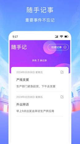 2. 提醒功能,软件具有定时提醒功能,帮助用户养成良好的工作习惯,及时开始和结束工作。