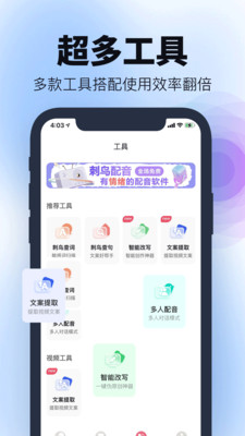 3、还搭配了有各种工具的工具箱,用户可以在其中使用文案提取等工具,更好的进行配音。