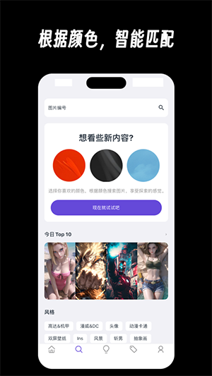 2、个性推荐: 根据用户喜好推荐个性化壁纸,根据你喜欢的颜色查找壁纸。